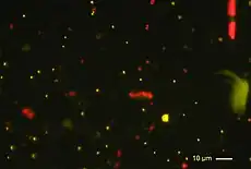 - Hibridación In situ (FISH) usando probetas fluorescentes reconociendo taxones específicos, por ej. una especie, un género o una clase[12]