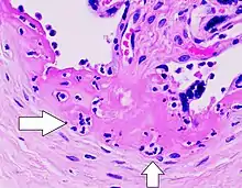 - 1 2 Redline, Raymond W. (2007-10). «Villitis of unknown etiology: noninfectious chronic villitis in the placenta». Human Pathology 38 (10): 1439-1446. ISSN 0046-8177. PMID 17889674. doi:10.1016/j.humpath.2007.05.025.