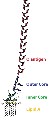 - Lipopolisacárido: P. gingivalis presenta lipopolisacárido (LPS) a nivel de la membrana externa, el cual interrumpe la homeostasis inmunológica del hospedero y produce inflamación gingival. Este LPS induce la producción de IL-6 e IL-8 desde fibroblastos del ligamento periodontal en humanos.