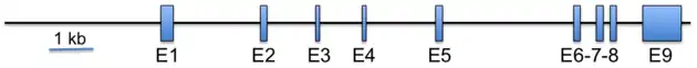 El gen del receptor 5-HT3A humano tiene una estructura similar al gen del ratón que tiene 9 exones y se distribuye en ~13 kb. Cuatro de sus intrones están exactamente en la misma posición que los intrones en el gen homólogo del receptor de acetilcolina α7, lo que muestra claramente su relación evolutiva.[12][13]
