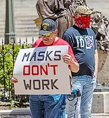 La oposición de las máscaras ha sido una visión común en todo el mundo durante la pandemia de COVID-19, ya que aquellos que se oponen a los requisitos de cubrirse la cara han realizado protestas y exhibido comportamiento rebelde en público por su negativa a seguir esta directriz.[2][3]