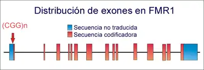 - ↑ Imbert G, et al (1998). "FMR1 and mutations in fragile X syndrome: Molecular biology, biochemistry, and genetics". En Well RD, et al (ed): Genetic Instabilities and Hereditary Neurological Diseases. San Diego: Academic Press. p15-25.