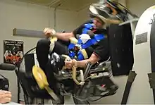 Christopher Altman realizando una prueba de mareo por movimiento espacial y un protocolo de aclimatación en el Laboratorio de Orientación Espacial Ashton Graybiel (AGSOL)