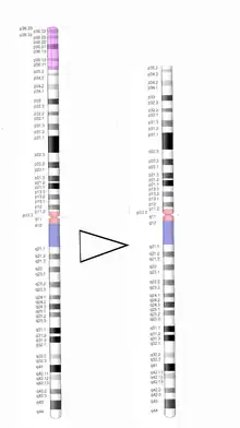 • Cromosoma derivativo: Es el caso más minoritario, correspondiendo sólo al 7%. En él, la región telomérica 1p es reemplazada por la de otro cromosoma en un proceso de translocación desequilibrada.