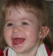 Un niño que muestra síntomas faciales del síndrome.