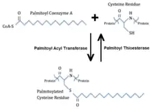 - ↑ Greaves, Jennifer (11 de mayo de 2010). «Palmitoylation of the SNAP-25 Protein Family: Specificity and Regulation by DHHC Palmitoyl Transferases». The Journal of Biological Chemistry 285 (32): 24629-24638. PMC 2915699. PMID 20519516. doi:10.1074/jbc.M110.119289.