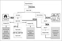 El sistema renina-angiotensina (RAS) o sistema renina-angiotensina-aldosterona (RAAS) es un sistema hormonal que regula la presión sanguínea, el volumen extracelular corporal y el balance de sodio y potasio. La renina es secretada por las células del aparato yuxtaglomerular del riñón. Esta enzima cataliza la conversión del angiotensinógeno, una glicoproteína secretada en el hígado, en angiotensina I que, a su vez, por acción de la enzima convertidora de angiotensina (ECA), se convierte en angiotensina II (A-II). Uno de los efectos de la angiotensina II es la liberación de aldosterona por la corteza de la glándula suprarrenal.[1]