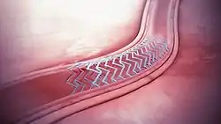 ![]() Un stent bioabsorbible implantado en el vaso sanguíneo. | ||