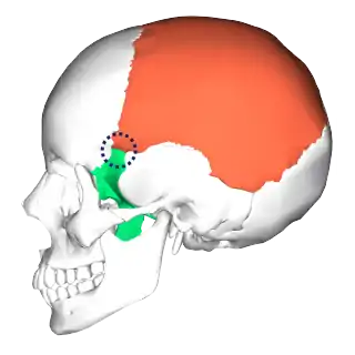 ![]() Ubicación de la sutura esfenoparietal Hueso parietal Hueso esfenoides | ||