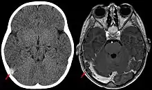 Esta enfermedad puede diagnosticarse con base a los síntomas ya mencionados; por ejemplo, la combinación de dolor de cabeza, signos de elevada presión intracraneal y anomalías neurológicas focales, o cuando causas derivadas del dolor de cabeza y anormalidades neurológicas, como la hemorragia subaracnoidea, han sido excluidas.[1]